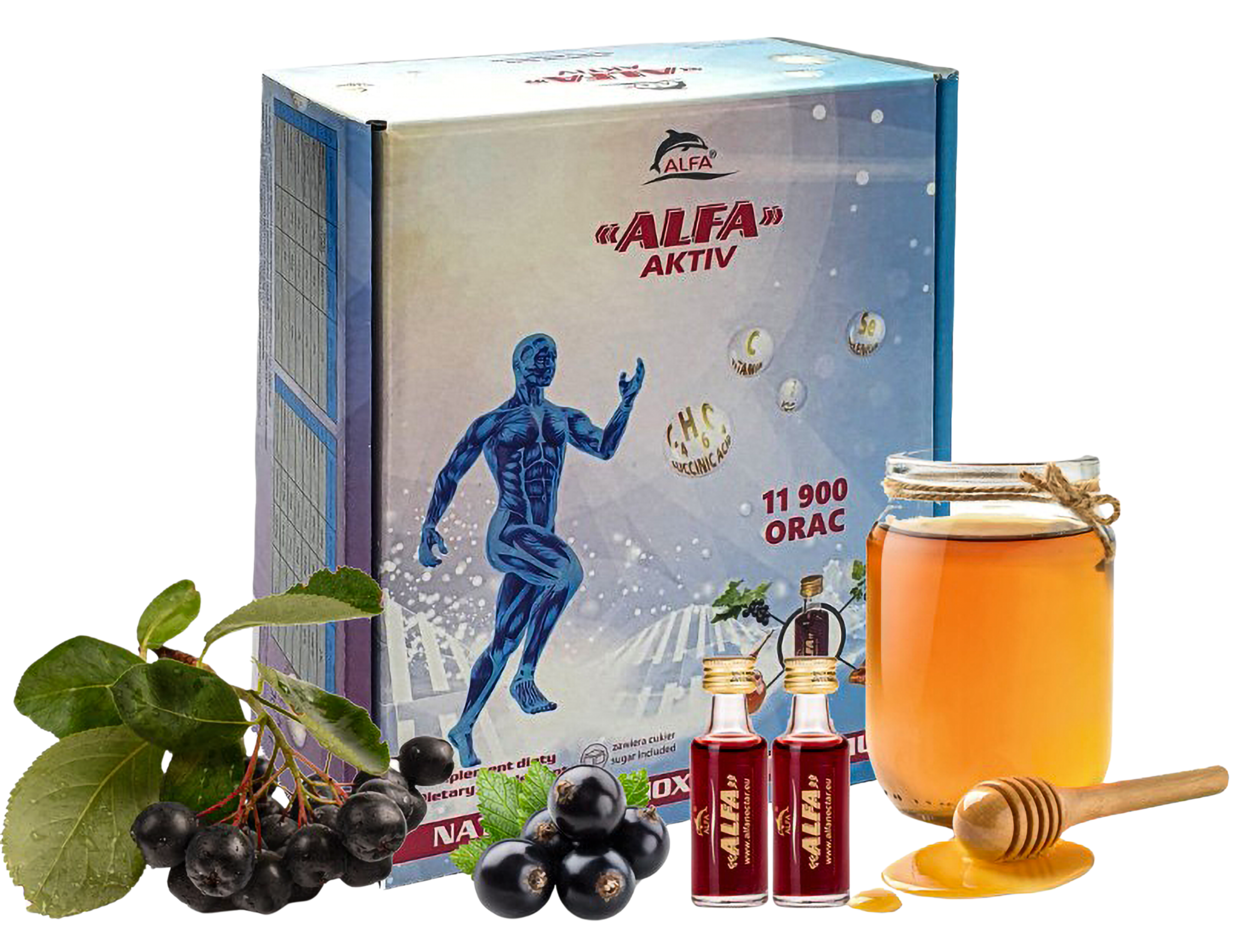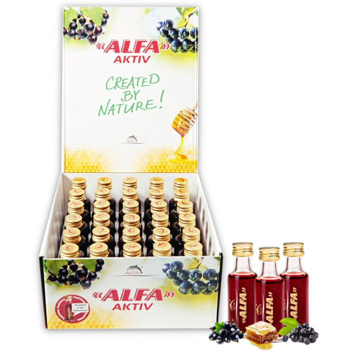 ALFA ACTIVE is based on a mixture of highly ionized water with a strong negative redox potential and aronia juice,